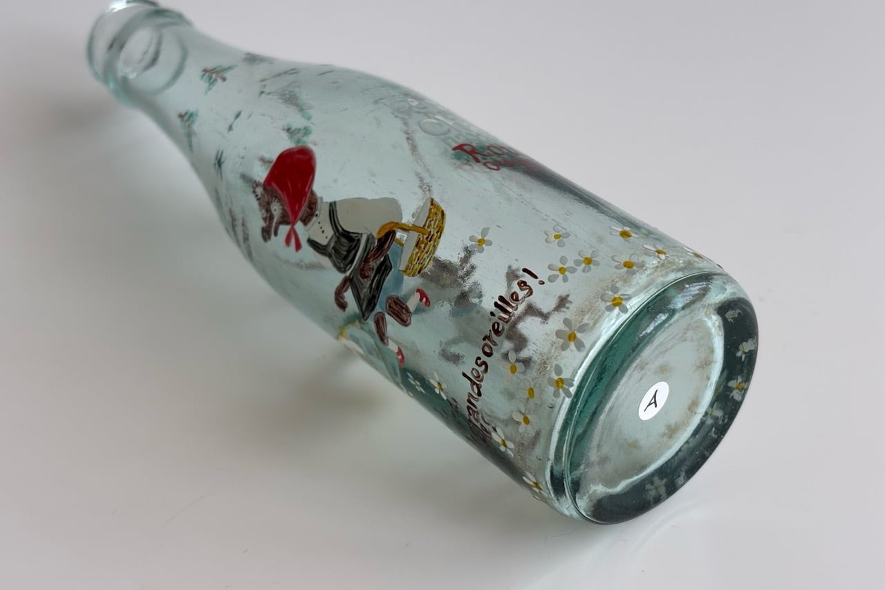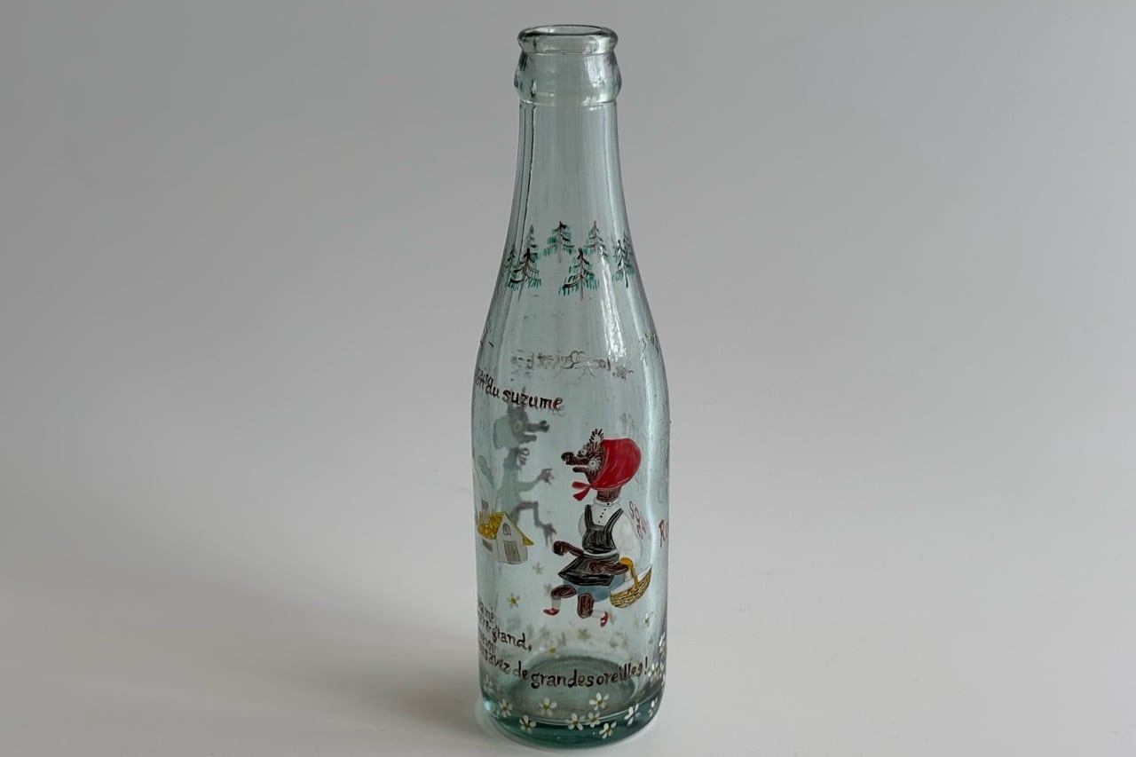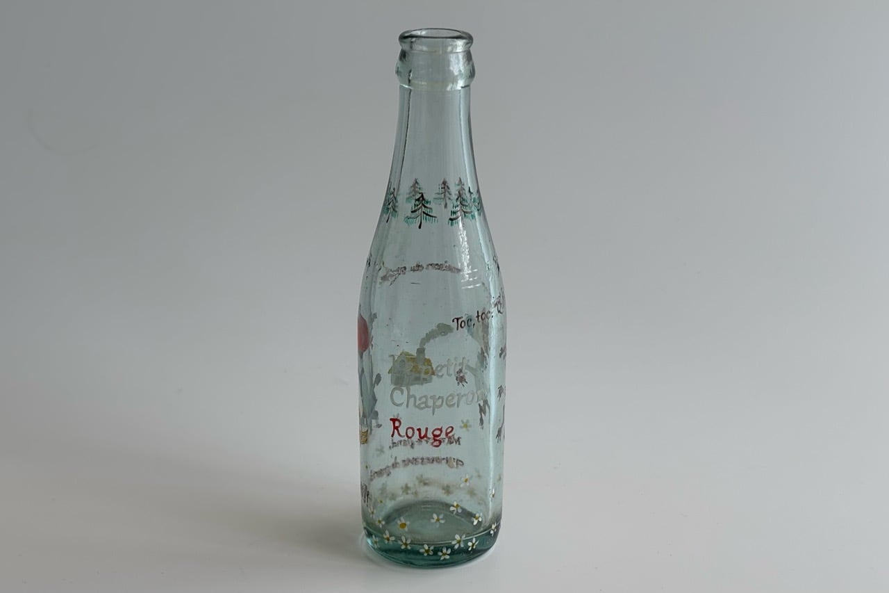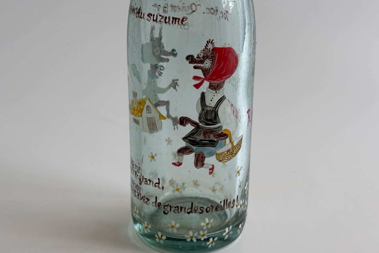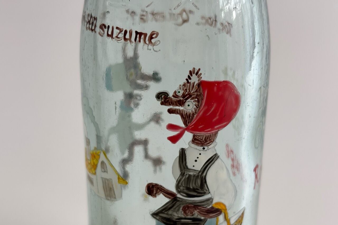日本の古いサイダーの瓶にハンドペイントで絵を描きました。