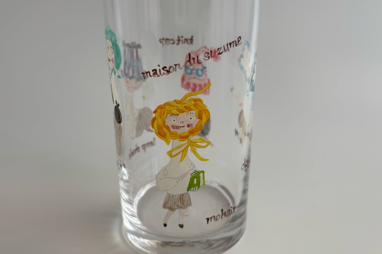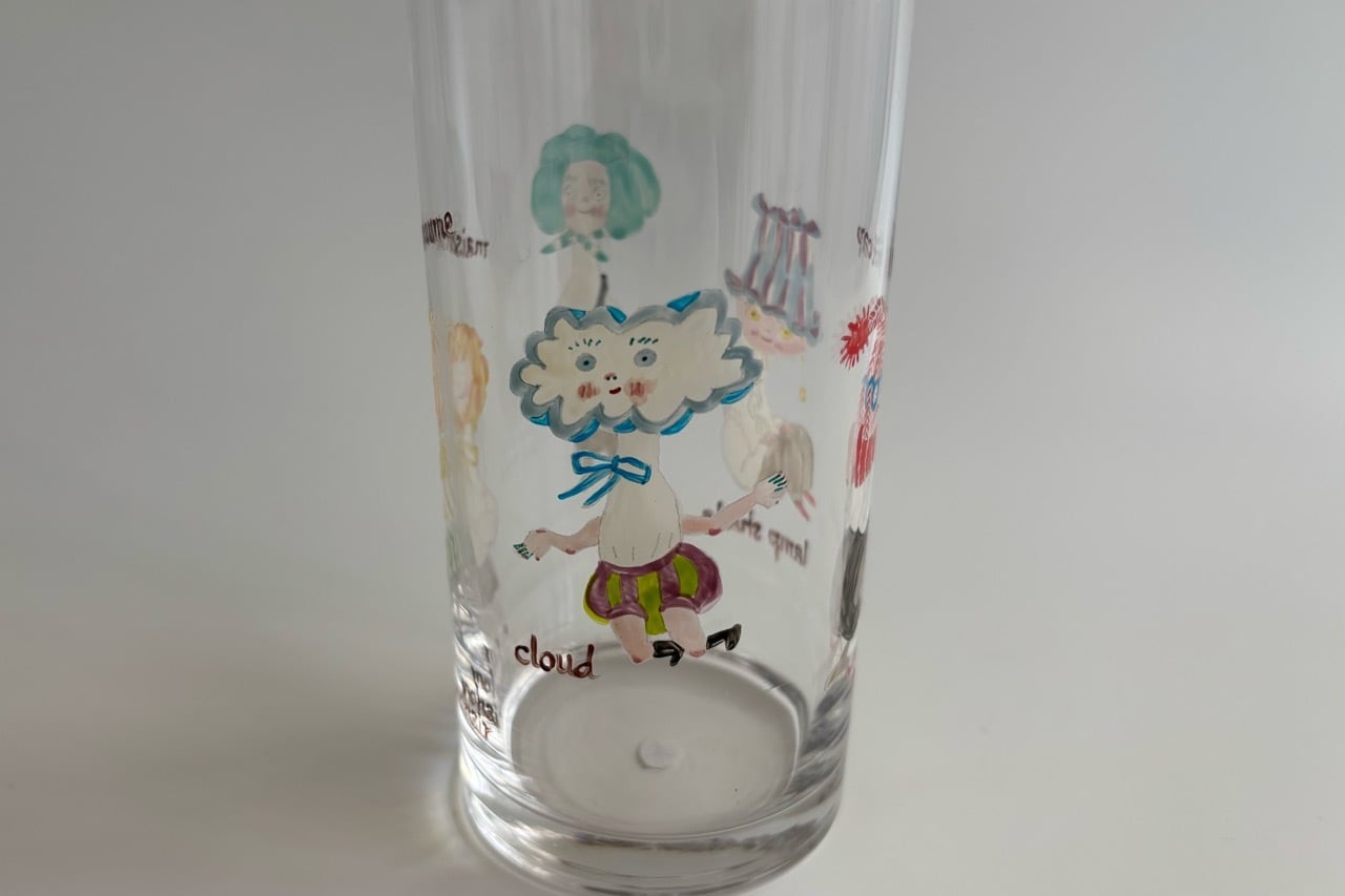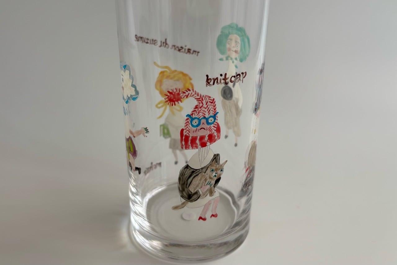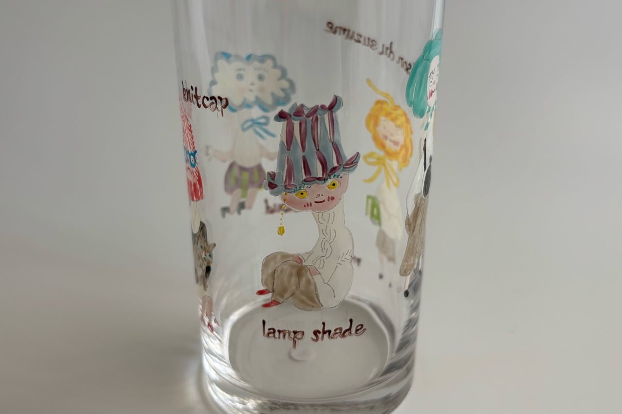 身近にある物に宿る小さな妖精をハンドペイントでガラスタンブラーに描きました。
