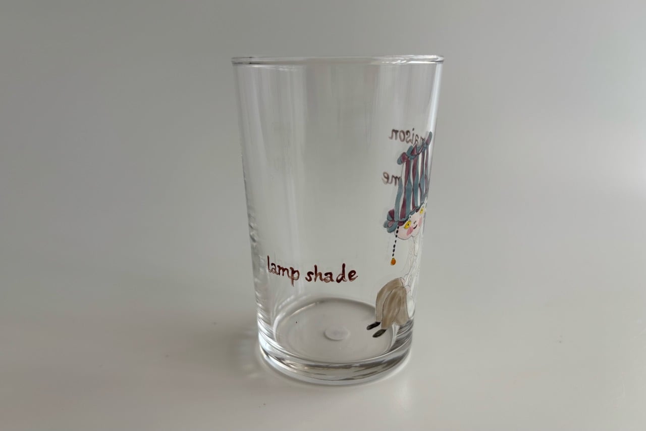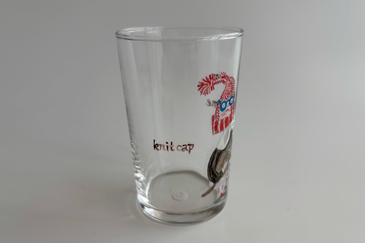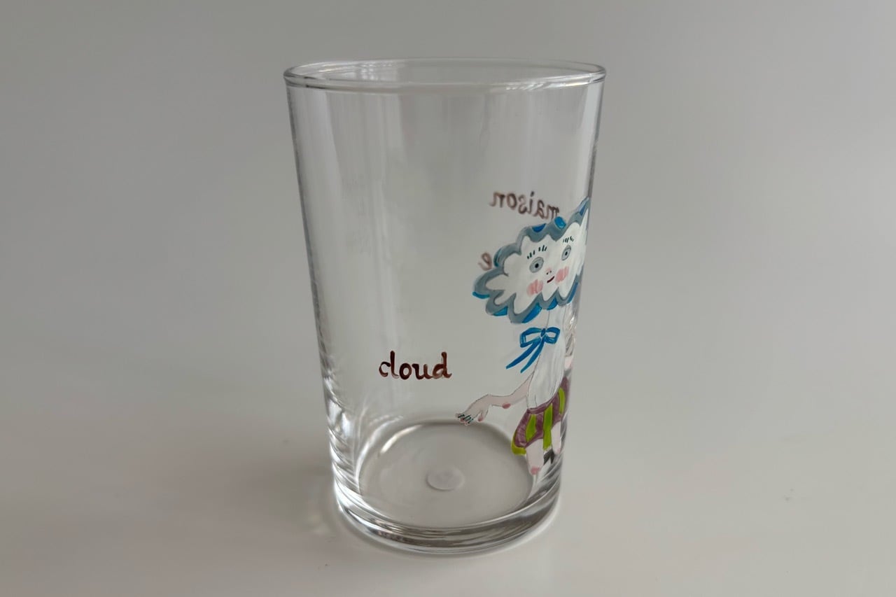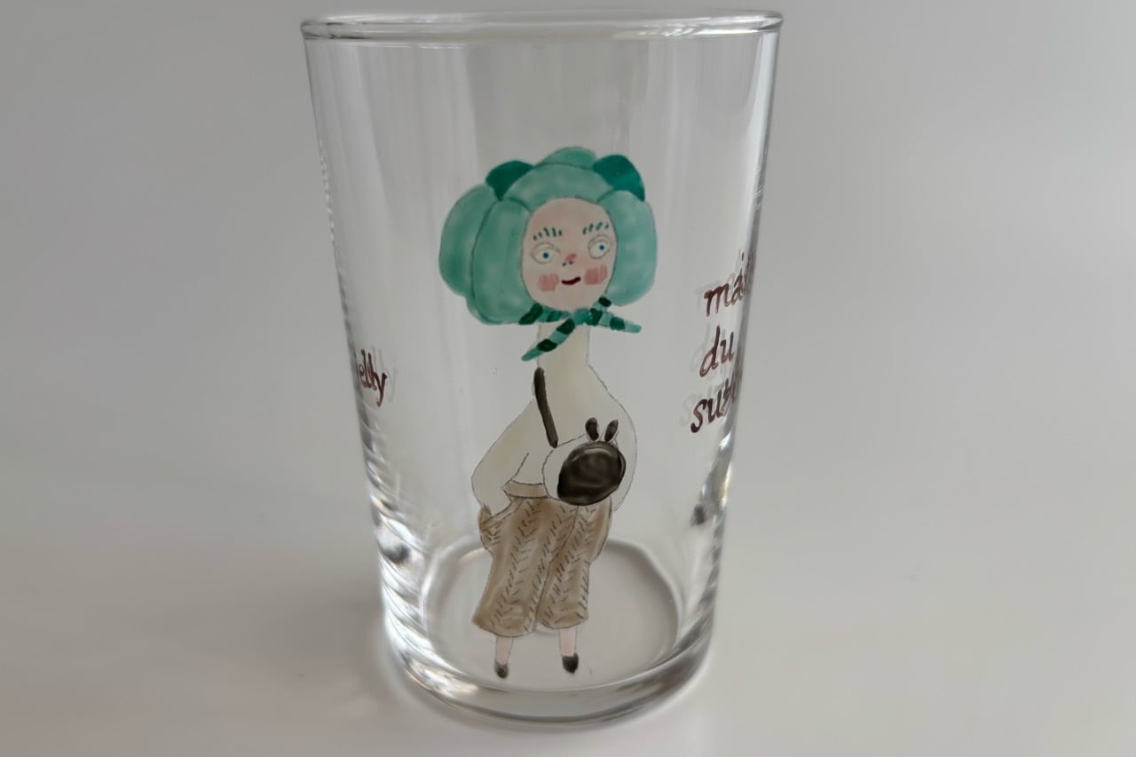 身近にある物に宿る小さな妖精をハンドペイントでガラスタンブラーに描きました。