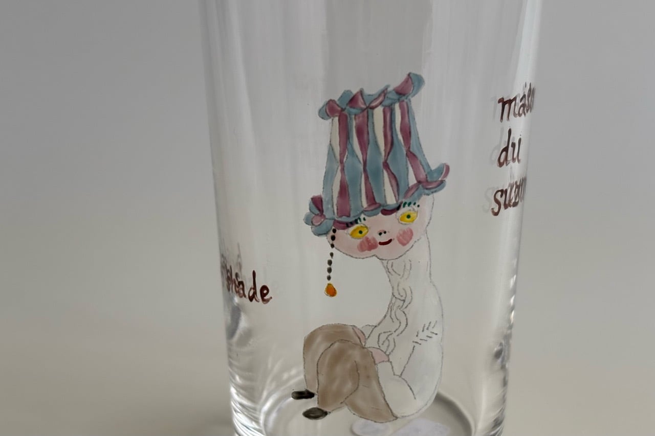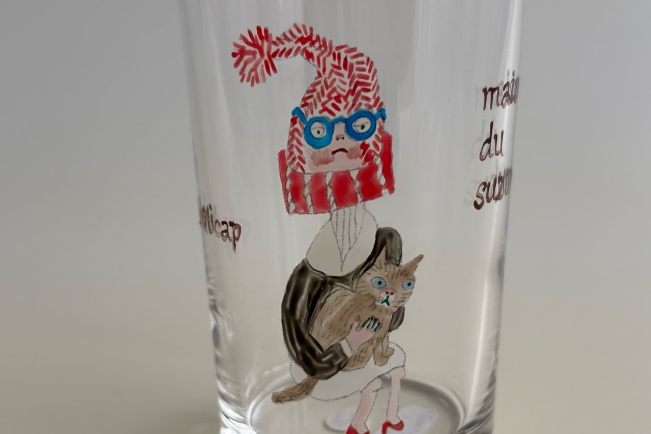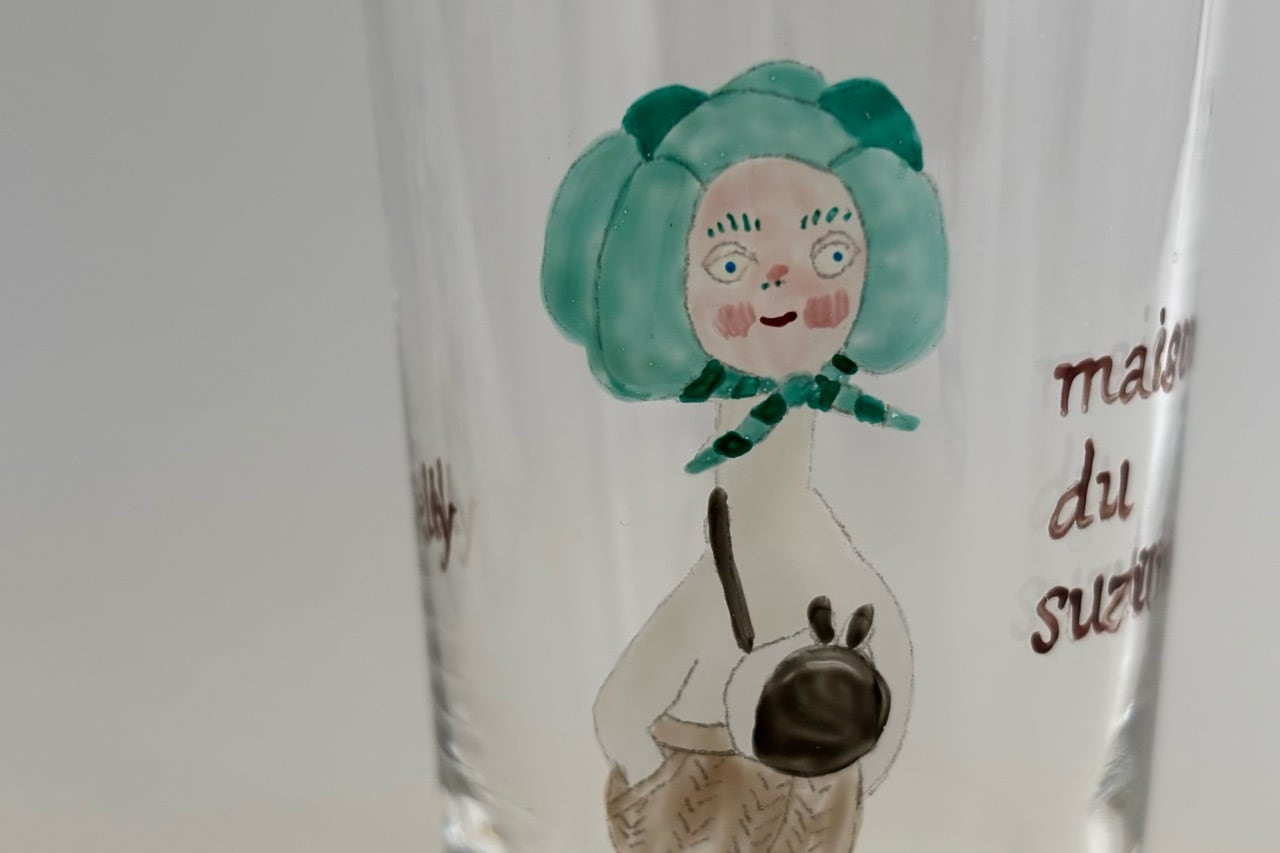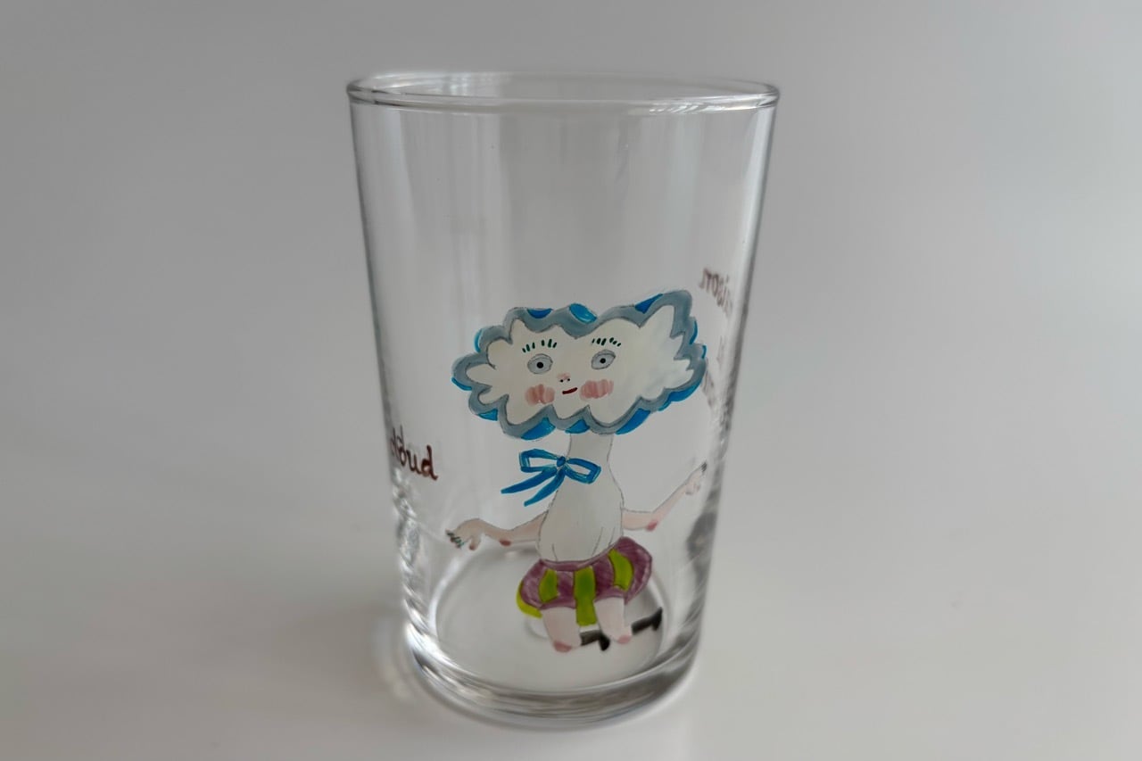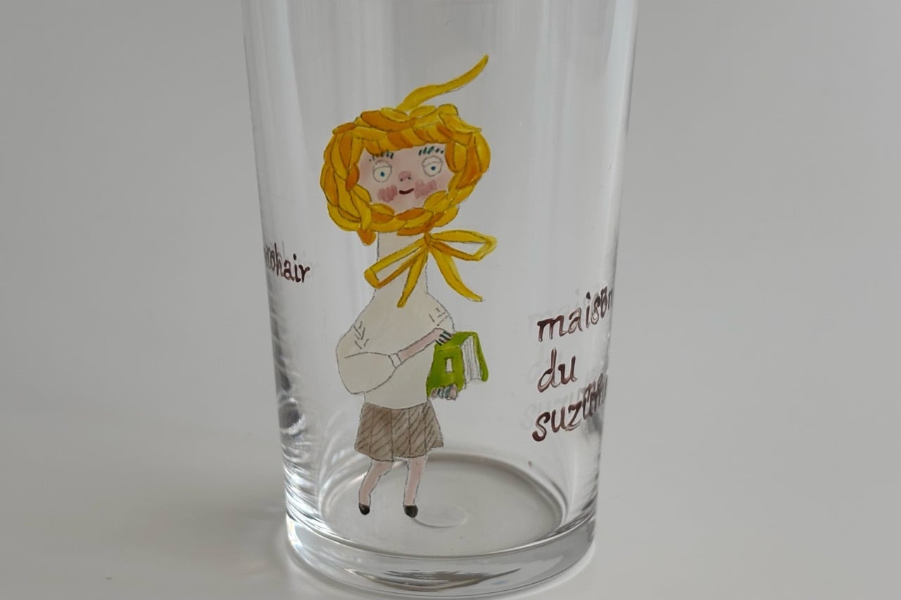 身近にある物に宿る小さな妖精をハンドペイントでガラスタンブラーに描きました。